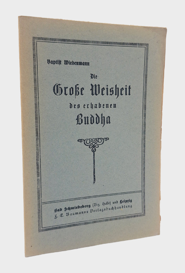 Wiedenmann, Johann Baptist: Die große Weisheit des erhabenen Buddha. Verlag von F[riedrich] E[duard] Baumann, Bad Schmiedeberg und Leipzig o.J. [um 1922]. 54 S., 1 Bl. OKartonage.