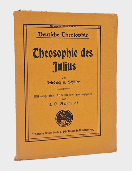 Schmidt, K[arl] O[tto] (Hrsg.): Theosophie des Julius. Von Friedrich von Schiller. Johannes Baum Verlag, Pfullingen in Württemberg o.J. Kl.-8°. Mit neugeistigen Erläuterungen herausgegeben. 77 S. OBroschur.