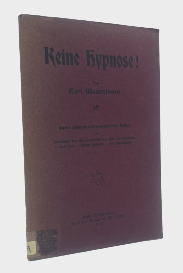 Keine Hypnose! Druck und Verlag von Karl Rohm, Lorch 1910.Zweite gekürzte und neubearbeitete Auflage. 31 S. OKart.