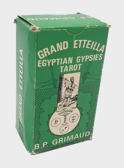 Grand Etteilla Egyptian Gypsies Tarot. B. P. Grimaud, Paris 1969. 16°. 117, [1] S., 1 Bl. et 78 cartes [120 x 65 mm] dans une boîte en carton originale.