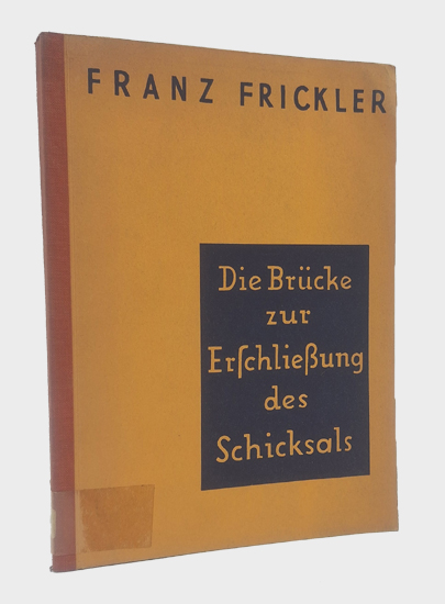 Frickler, Franz: Die Brücke zur Erschließung des Schicksals. Baumgartner-Verlag, Warpke-Billerbeck (Hann.) 1954. 260 S. OKarton mit Geweberücken.