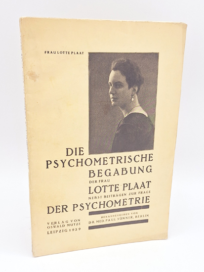 Die psychometrische Begabung der Frau Lotte Plaat nebst Beiträgen zur Frage der Psychometrie. Verlag von Oswald Mutze, Leipzig 1929. Gr.-8°. 2 Bl., 104 S. OKarton.
