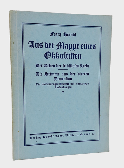 Herndl, Franz: Aus der Mappe eines Okkultisten. Verlag Rudolf Krey, Wien 1936. 39, [1] S. OKarton.