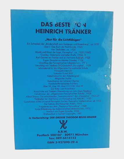 Das Beste von Heinrich Tränker. Arbeitsgemeinschaft für Religions- und Weltanschauungsfragen (A. R. W.), München 1996. Mit Abbildungen im Text. 402, [2] S. Verlagsanzeigen. Illustrierte OKartonage.