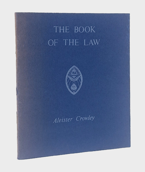 THE BOOK OF THE LAW. [technically called LIBER AL vel LEGIS SUB FIGURA CCXX AS DELIVERED BY XCIII=418 TO DCLXVI]. An Ixii Sol in Aries March 21, 1933 c.v. Privately printed by the O.T.O. Booklegger / Albion o.J. [1973] 12° [140 x 120 mm]. 47 S., 1 Bl. Paperback.