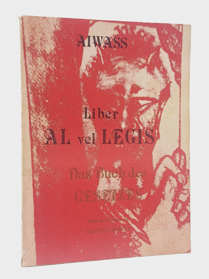 Textausgabe des Liber Al vel Legis. Das Buch enthält die deutsche Übersetzung (mit einigen kleinen Änderungen zur zweiten Auflage von Michael D[ietmar] Eschner), den englischen Originaltext und eine Reproduktion der ursprünglichen Handschrift. Der englische Text ist zeichengenau dem von Aleister Crowley redigierten Equinox Vol. 1 No. 10, entnommen. – Inhalt.: Vorwort. Teil I. Nuit. Teil II. Hadit. Teil III. Ra-Hoor-Khuit. Der Kommentar. Faksimile des Originalmanuskriptes. – Umschlag berieben, fleckig und mit kleinem Einriss am Pfalz. Buchblock in zwei Teilen und lose im Umschlag.