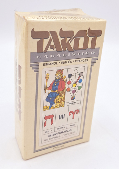 Portela, J. A.: Tarot Cabalistico. Naipes Heraclio Fournier, S.A., Vitoria (Spain) 1985. 79 cartas [111 x 60 mm] a todo color y folleto con instruciones en caja de cartón ilustrada.