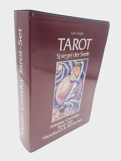 Tarot. Spiegel der Seele. Aleister Crowley Tarot-Set (Handbuch & 80 Karten). Urania Verlags AG, Neuhausen 1990. 17. Auflage: 121. bis 130. Tausend. 142 S., 1 Bl. Illustr. OKarton und 80 Karten [111 x 75 mm] in Kunststoffbox.