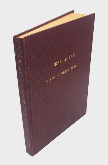 Liber Aleph VEL CXI. The Book of Wisdom or Folly in the Form of an Epistle of 666 THE GREAT WILD BEAST to his Son 777 being THE EQUINOX VOLUME III No. vi by THE MASTER THERION (Aleister Crowley). Level Press, San Francisco, Calif. 1972. 4° [285 x 207 mm]. First Edition. Frontispiece portrait, text printed in brown ink on pale yellow paper. xii, 1 Bl., 219, [1] S. Original maroon patterned cloth, with gilt titling to spine and front cover.