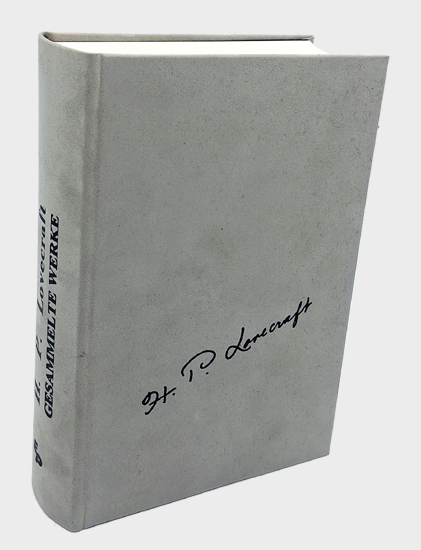 Lovecraft, H[oward] P[hillips]: Gesammelte Werke (in 13 Bänden = Werkgruppe I-III [so komplett]). Edition Phantasia [Joachim Körber Verlag], o.O. [Kehrig] 1999. Herausgegeben von Marco Frenschkowski, Joachim Körber und Uli Kohnle. 473; 464; 466; 418; 426; 486; 408; 474; 451; 446; 518; 563; 581 S. Graue Samteinbände mit Faksimilesignatur und Kunstoffumschlag.