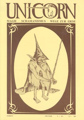 Jörg Wichmann (Hrsg): Unicorn. Magie – Schamanismus – Wege zur Erde. Nummer X. Herbst 84. Herausgegeben von Jörg Wichmann. Von. S. 133 – 192. 4° (Jahrgangszählung) 4°. Illustr. farbige OBroschur.