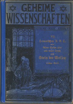 Geheime Wissenschaften. Eine Sammlung seltener älterer und neuerer Schriften über Alchemie, Magie, Kabbalah, Rosenkreuzerei, Freimaurerei, Hexen- und Teufelswesen usw. Unter Mitwirkung namhafter Autoren herausgegeben von A. v. d. Linden. Siebenter Band.Originalgetreue Facsimile-Ausgabe: Berlin, Christian Ulrich Ringmacher 1779. Ackermann IV, 88 (zur Ausg. 1915): “Dieses im Original fast unauffindbar gewordene Werk enthält auszugsweise resp. den Kern von 73 d. seltensten alten alchemistischen-theosophischen-rosenkreuzerischen Hauptschriften zur Herstellung d. Steins der Weisen (Kunst d. Goldmachens, ewige Jugend usw.)”. Zur Originalausgabe siehe ausführlich Ferguson I, 397. – Einband berieben u. bestoßen, Kapitale begriffen (oberes stärker), Exlibris u. dez. handschriftl. Besitzvermerk, erstes Bl. (w) gestempelt, sonst ein gutes Exemplar.