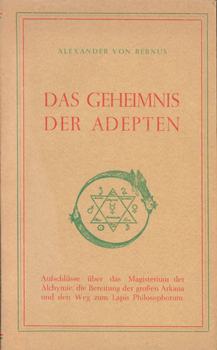 Bernus, Alexander von: Das Geheimnis der Adepten. Aufschlüsse über das Magisterium der Alchymie, der Bereitung der großen Arkana und den Weg zum Lapis Philosophorum. Osiris Verlag, Sersheim/Württ. 1957. 2. Auflage. 1 Bl., 67 S., 9 Bl. (Anhang), 2 Bl. Vlgs.-Anz. illustr. OKarton.