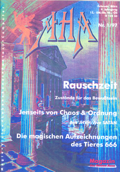 Inhalt: Jenseits von Chaos und Ordnung. “Wo Chaos ist da ist keine Ordnung, denn Chaos ist, man weiß das, Unordnung … Aber, so sagen die Chaosfans, Chaos sei Kreativität und Power, Ordnung hingegen steril. Alles falsch sagen die Vertreter der Ordnung, …” (einen dritten Standpunkt schildert M.D.E.). Rauschzeit. Ein kleiner Einblick in die auf diesem Erdball gesammelten Möglichkeiten, die Sinne zu betäuben, zu schärfen, verfeinern, erweitern, verbessern oder auszuschöpfen. (von Nebucephallos). Nur in meinem Kopf? Man kann zwar keine Interpretation beobachten, aber dafür Beobachtung interpretieren. Ein Beobachtungsschema, das zu kennen es sich lohnt, nebst praxisbezogenen Anregungen. (von S. Ulbrich). Die Satanshexen und ihr Kult. (von Dieter Natas-Hellson). Über Timothy Leary. (von Markus Klose). Astrokartographie [am Beispiel des Lebens von Timothy Leary]. (von Oliver Matte). Die Magischen Aufzeichnungen … des Tieres 666 – A. Crowley. Ein Auszug: Eintrag vom 23. Mai 1920. (übersetzt von Priska Buchner). Wie paßt die Welt in den Kopf? Ein Gedankenexperiment … (von M.D.E.). CD’s. Bücher. Körperübungen. Leserbriefe. Kleinanzeigen. ComputerCorner etc. – Gutes Exemplar.