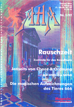 Sabrina Ulbrich (Hrsg.): AHA. Magazin des Neuen Äons. (Februar / März 1997. 9 Jahrgang, Nr. 1). EVOLOS Verlag Sabrina Ulbrich, Bergen/Dumme 1997. 4°. Mit zahlreichen Textabbildungen. 74 S. farbig illustr. OBroschur.