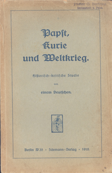 Papst, Kurie und Weltkrieg. Historisch-kritische Studie von einem Deutschen. Säeman-Verlag, Berlin 1918. 156 S. OKarton.