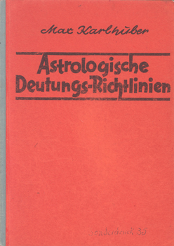 Karlhuber, Max: Astrologische Deutungs-Richtlinien. Grundlagen moderner Schicksals-Deutung mit Häuser-Schemas für alle Stunden des Tages und Jahres. Baumgartner-Verlag, Warpke-Billerbeck (Hann.) 1954. 1 Bl. [Titelbl.], 141 S., 1 Bl. [Inhalt] OHLwd.