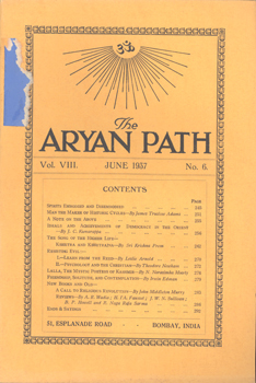 The Aryan Path. Vol. VIII. June 1937, No. 6. K. N. Panday, Theosophy Company, Bombay (India) 1937. Gr.-8°. S. 246 [245] bis S. 291 OKarton.