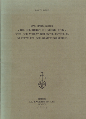 Gilly, Carlos: Das Sprichwort “Die Gelehrten die Verkehrten”, oder der Verrat der Intellektuellen im Zeitalter der Glaubensspaltung. Leo S. Olschki Editore, Firenze 1991. Gr.-8°. 229-375 OKarton.