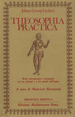 Gichtel, Johan Georg: Theosophia Practica. Edizioni Mediterranee, Roma 1982. Breve introduzione e istruzione sui tre principi e i tre mondi nell’ uomo. A cura di Maurizio Barracano. 175 S. illustr. OKarton.