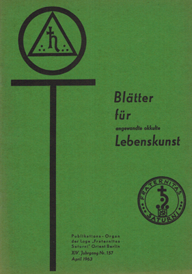 Blätter für angewandte okkulte Lebenskunst. XIV. Jahrgang, Nr. 157. Herausgegeben (als Privatdruck) von Gregor A. Gregorius. Meister der Loge Fraternitas Saturni Orient Berlin, Berlin 1963. 8°. S. 49-64. OKarton.