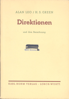 Leo, Alan (Ps.) = William Frederik Allan: Direktionen und ihre Berechnung. Autorisierte Übersetzung aus dem Englischen von Wilhelm Becker. Fünfte Auflage. 140 S., 2 Bl. Vlgs.-Anz. OKart.