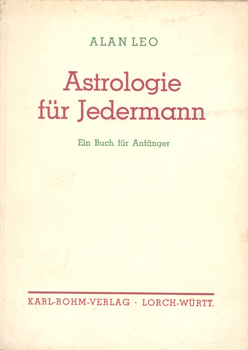 Leo, Alan (Ps.) = William Frederik Allan: Astrologie für Jedermann. Ein Buch für Anfänger. Nach der sechsten englischen Ausgabe übersetzt von Wilhelm Becker. Karl Rohm Verlag, Lorch-Württ., 1950. Dritte verbesserte Auflage. 143 S. OKart.