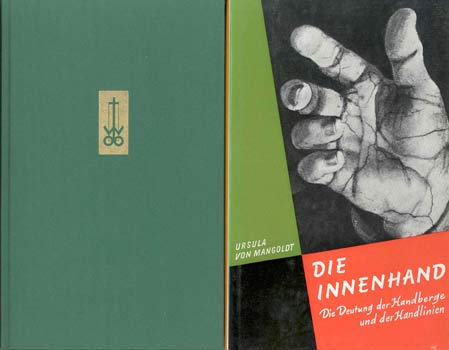 Mangoldt, Ursula von: Die Innenhand. Die Bedeutung der Handberge und der Handlinien. Ein cheirologisches Lehrbuch. Weilheim / Obb., O. W. Barth 1968. 2. neu durchges. u. verb. Aufl. Mit 2 (1 gef.) Taf. u. zahlr. Textabb. 214 S. OLwd. mit OUmschl.