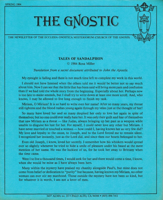 The Gnostic. The Newsletter of the Ecclesia Gnostica Mysteriorum (Church of the Gnosis). Ecclesia Gnostica Mysteriorum, Palo Alto 1984-87. ca. 7 S. pro OBroschur.