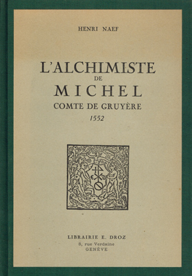 Naef, Henri: L’Alchimiste de Michel Comte de Gruyère 1552. Librairie E. Droz, Genève 1946. 304 S. priv. Lwd. mit montiertem OKarton.