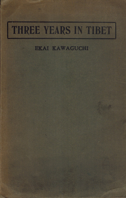 Three Years in Tibet. The Theosophical Publishing Society, Benares and London 1909. Gr.-8°. With the original Japanese illustrations by The Shramana Ekai Kawaguchi. 2 Bl., xv, 719 S., 1 Bl. (Falttafel), 1 (w) OKarton.