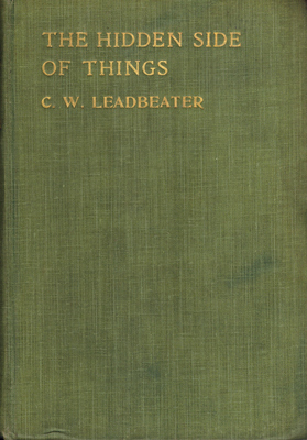 Leadbeater, C(harles) W(ebster): The Hidden Side of Things. The Theosophical Publishing House, Adyar, Madras 1924. Third Edition. xii, 648 S., OLwd. mit Goldprägung.