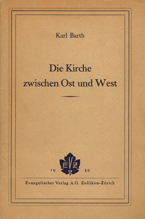 Barth, Karl: Die Kirche zwischen Ost und West. Evangelischer Verlag A.G., Zollikon-Zürich 1949. 32 S. OKarton.
