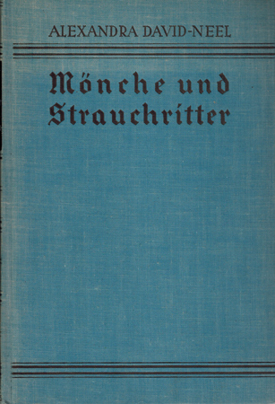 David-Néel, Alexandra: Mönche und Strauchritter. Ein Tibetfahrt auf Schleichwegen. F. A. Brockhaus, Leipzig 1933. Gr.-8°. Mit 29 Abbildungen und einer Karte. Aus dem Französischen von Dr. Karl Pfannkuch. 290 S., 1 Bl. Vlgs.-Anz. OLwd.