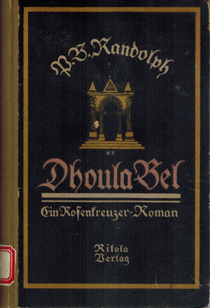 Randolph, P[aschal B[everly]: Dhoula Bel. Ein Rosenkreuzer-Roman. Rikola Verlag, Wien 1922. Aus dem englischen Manuskript übersetzt und herausgegeben von Gustav Meyrink. 238 S., 1 Bl. Vlgs.-Anz. illustr. OHLwd.