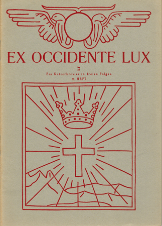 Ex Occidente Lux. Ein Ketzerbrevier in freien Folgen. 2. Heft. Published by Genossenschaft Psychosophia, Zürich Schweiz 21. April 1953. Mit 3 Abbildungen u. einer Tabelle. 24 S. illustr. OKarton.