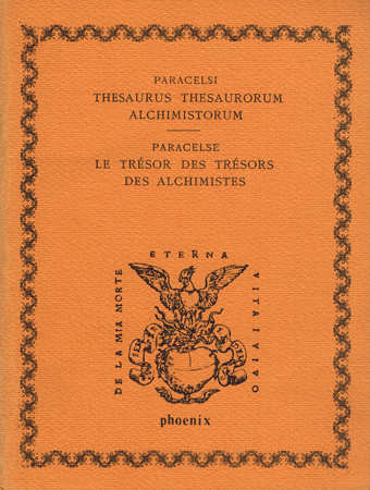 Paracelse: Paracelsi thesaurus thesaurorum alchimistorum. – Le trésor des trésor des Alchimistes. Edizioni Phoenix, Genova 1978. Traduit du latin par A[lbert] Poisson. 1 (w), 8 Bl., 1 (w) illustr. OKarton.