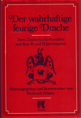 Der wahrhaftige feurige Drache. Zwei Zauberbuch-Parodien aus dem 18. und 19. Jahrhundert. Keil Verlag, Bonn 1979. Kl.-8°. 1. Auflage. Mit einem Vorwort von Rudolf Pörtner. Herausgegeben und kommentiert von Roderich Feldes. 224 S. OLwd. mit OUmschlag.