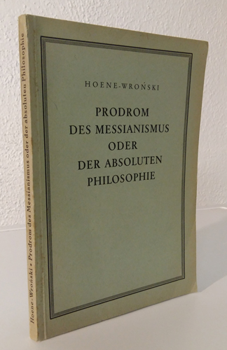 Hoene-Wronski, Józef Marja [eigentl. Józef Hoëne]: Prodrom des Messianismus oder der absoluten Philosophie. Kommissionsverlag und Druck von Gerhard Stalling, Oldenburg i.O. (1928). Mit 1 Portait. Übersetzung aus dem französischen Original von E[lsa] S[tarostowa]. XVI, 139 S. OKarton.