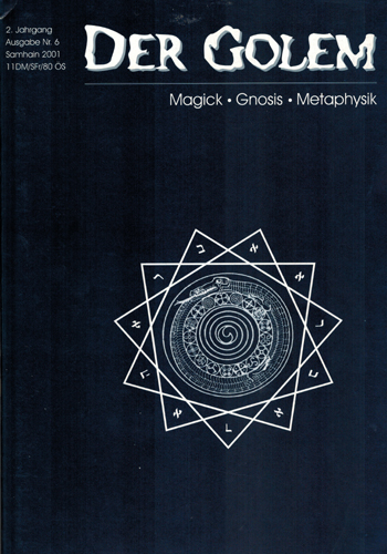 Der Golem. Magick, Gnosis, Metaphysik. (Jahrgang 2, Ausgabe 6). Hadit Verlag, Kahla 2001. 4°. 66 S. illustr. OKarton.