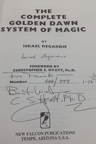Regardie, [Dr. Francis] Israel: The Complete Golden Dawn System of Magic. New Falcon Publications, Arizona 2003. Second Revised Limited Edition. Foreword by Christopher S. Hyatt. Zusammen 1237 S. OLwd. mit silberner Prägung auf Rücken und Deckel.