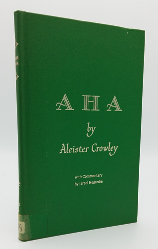 Crowley, Aleister (eigentl.: Edward Alexander C.): AHA. Sangreal Foundation, Dallas, Texas 1969. First Edition. 1 Bl., 76 S., 1 Bl. Green cloth with silver embossing on spine and cover.