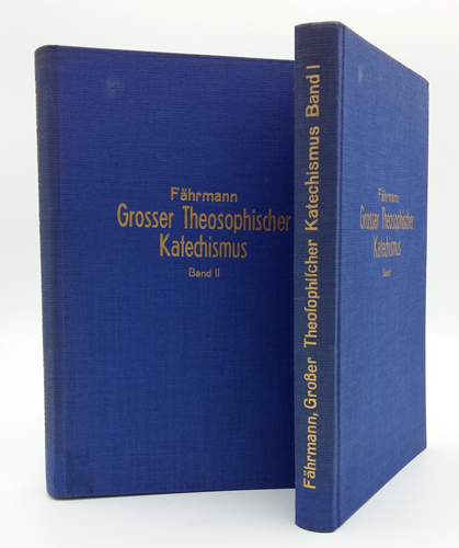 Fährmann, Johannes: Grosser Theosophischer Katechismus. Band I & Band II. Schatzkammerverlag Hans Fändrich, Calw (Württ.) 1951. 47, 85, 148 S.; 96, 95, 103, 81 S. OLwd. Bde. mit Goldprägung.