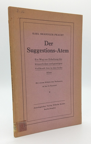 Brandler-Pracht, Karl: Der Suggestions-Atem. Ein Weg zur Erhaltung der körperlichen und geistigen Vollkraft bis in das hohe Alter. Astrologischer Verlag Wilhelm Becker, Berlin-Steglitz 1936. 16. bis 18. Tausend. Mit einem Bildnis des Verfassers. 1 Bl., 62 S., 1 Bl. OKart.