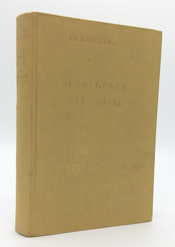 Cerminara, Dr. Gina: Erregende Zeugnisse von Karma und Wiedergeburt. Hermann Bauer Verlag, Freiburg im Breisgau o.J. [um 1965]. 2. Auflage. Aus dem Englischen übertragen von Eberhard Maria Körner. 286 S. OLwd. mit Goldprägung.