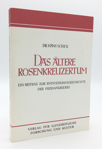 Schick, Hans: Das ältere Rosenkreuzertum. Ein Beitrag zur Entstehungsgeschichte der Freimaurerei. Verlag für ganzheitliche Forschung und Kultur, Struckum o.J. [um 1980]. 338 S., 1 (w) OKarton.