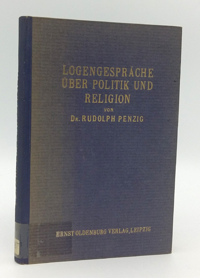 Penzig, Dr. Rudolph: Logengespräche über Politik und Religion. Ernst Oldenburg Verlag, Leipzig 1923. 239 S. OHLwd. mit Goldprägung.