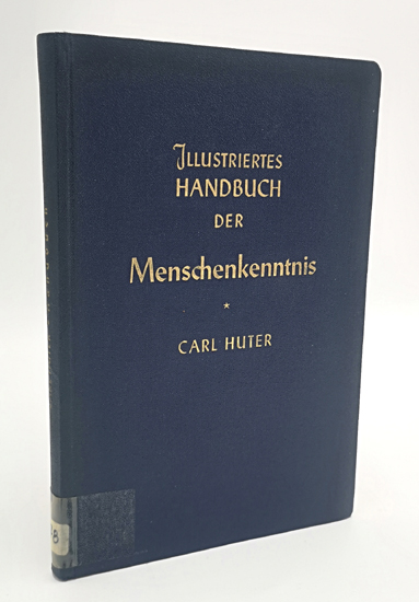 Huter, Carl [Heinrich]: Illustriertes Handbuch der praktischen Menschenkenntnis. Volkstümliche Darstellung meines Systems der wissenschaftlichen Psycho-Physiognomik. Körper-, Kopf-, Gesichts- und Augen-Ausdruckskunde. Verlag für Carl Huters Werke, Amandus Kupfer Nachf., Schwaig bei Nürnberg 1952. Fünfte Auflage. Mit zahlr. Abb. u. Tafelteil auf Kunstdruckpapier. 224 S. OLwd. mit Goldprägung auf Rücken und Deckel.