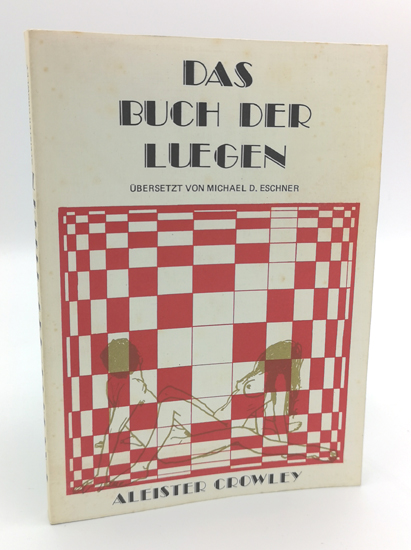 Im Auftrag der A.·.A.·. Thelema. Vollständiger Titel: Das Buch der Lügen, welches auch fälschlicherweise Unterbrechungen genannt wird. Die Wanderung und Falsifikationen Des einen Gedankens von FRATER PERDURABO (Aleister Crowley) Welcher Gedanke in sich selbst unwahr ist. Eine Neuauflage mit einem zusätzlichen Kommentar zu jedem Kapitel. – Umschlag leicht fleckig und schwach lichtgebräunt (Rücken), sonst gutes Exemplar in einer seltenen Einbandvariante.