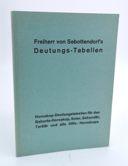 Sebottendorf, Freiherr [Rudolf] von (Ps.) = Adam Alfred Rudolf Glauer: Deutungs – Tabellen. Horoskop – Deutungstabellen für das Geburts – Horoskop, Solar, Sekundär, Tertiär und alle Hilfs – Horoskope. Baumgartner Verlag, Warpke – Billerbeck o. J. (um 1956) 100 S. OKart.